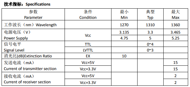 ● SC/FC/ST 或尾纤型光接口,单模双纤收发一体光模块