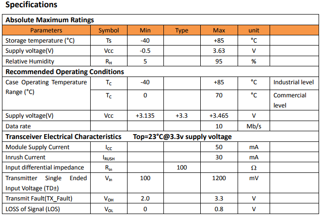 0-10Mb/s Duplex Fibers SFP Optical Transceiver