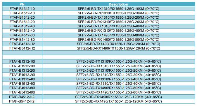 F-tone' s FTAF-Bxx12-xx series of transceiver modules are the perfect solution for high-speed communication networks.FTAF-Bxx12-xx series modules provide reliability, robust and high performance to Telecom, Datacom, and other data communication applications.