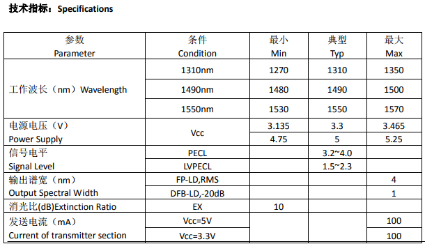 ● 发射器件可分别选用 1310nm FP\1550nm FP 或 1490nmDFB\1550nm DFB