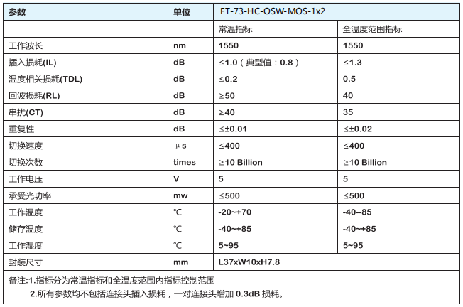 ● 低插入损耗 ,重复性好