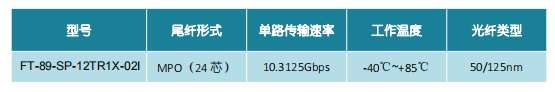 本产品为FT-89系列SNAP12 并行光模块,仅展示部分参数,如有需要,请联系我们。