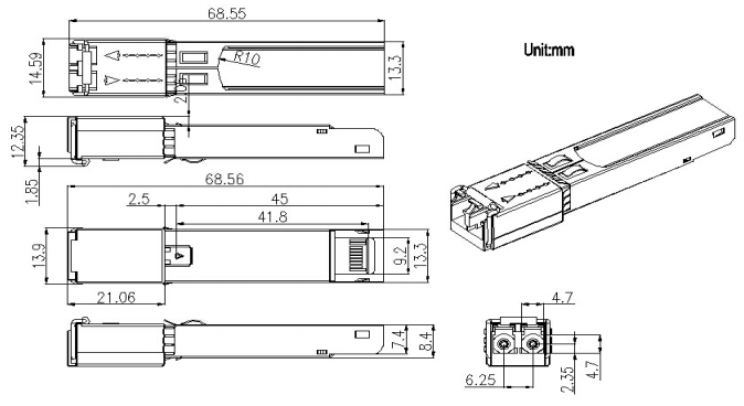 The SGMII Series optical transceivers are high performance, cost effective modules. They offer the customer a range of design options, including optional DDMI, standard temperature ranges. They are designed to provide 125Mb/s and 1.25 GB/s optical link in Gigabit Ethernet switches. These transceivers are qualified in accordance with GR-468-CORE.
