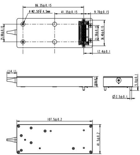 The mechanical dimensions of the 100G coherent optical module . Max. dimensions (L × W × H): 107.5 mm × 41 .5 mm × 14.8 mm