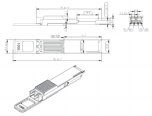 ● Receiver: 2*27.5Gbaud/s Pin-PD ROSA