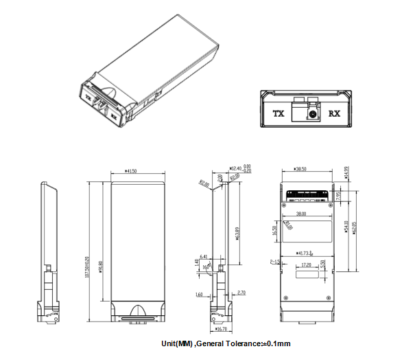 CFP2, PIN-base Integrated ROSA with SOA (without TOSA),100GE/OTU4,40km,-40ºC ~ +85ºC |