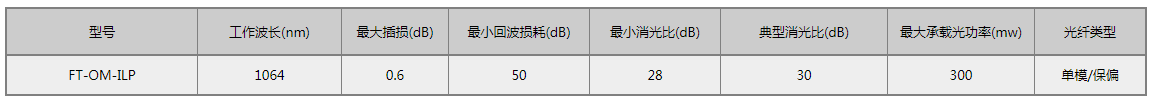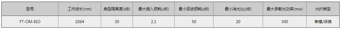 F-tone Networks公司的1064nm保偏隔离器用于隔离沿器件反向传输的保偏光信号,隔离度可到30dB,差损小,偏振消光比大于25dB,广泛应用于保偏光纤放大器、保偏光纤激光器等光学测试系统中。