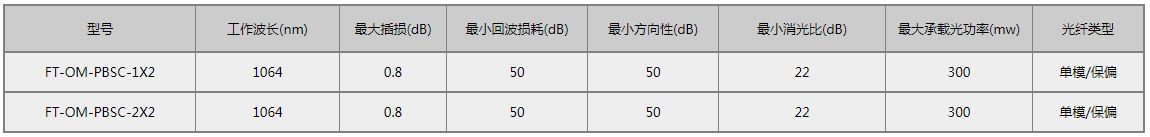 F-tone Networks公司的1064nm偏振光合束器 将来自两根保偏光纤的偏振光束合波到一根单模光纤输出,或者偏振光分束器把光束分成两个正交的偏振态输出到两根保偏光纤中。这种器件的一个重要应用领域是用来实现偏振态复用(解复用)从而增加光纤网络系统的通信容量。