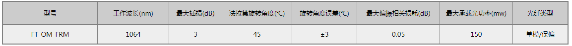 F-tone Networks公司的1064nm法拉第旋转镜是一种能够将1064nm光信号光旋转90度偏振态的无源器件。这种旋转镜具有卓越的性能,包括尽可能低的插入损耗和环境稳定性。在掺镱光纤放大器,掺镱光纤激光器和其他光纤仪器中有非常广泛的应用。