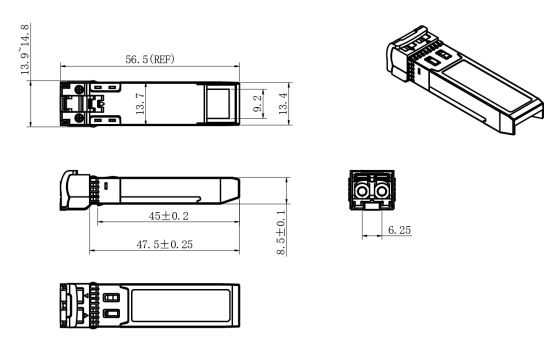 ● Hot-Pluggable SFP+ Footprint LC Optical Transceiver