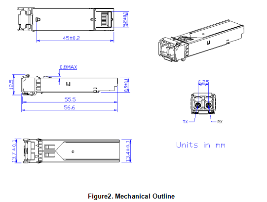 The optical output can be disabled by a TTL logic high-level input of Tx Disable, and the system also can disable the module via I2C. Tx Fault is provided to indicate that degradation of the laser. Loss of signal (LOS) output is provided to indicate the loss of an input optical signal of receiver or the link status with partner. The system can also get the LOS (or Link)/Disable/Fault information via I2C register access.