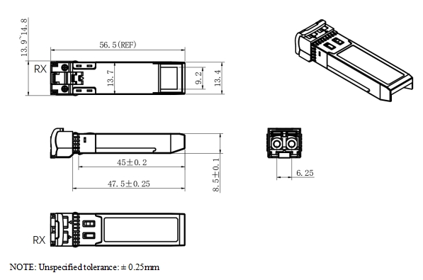 ● Hot-Pluggable SFP Footprint LC Optical Receiver