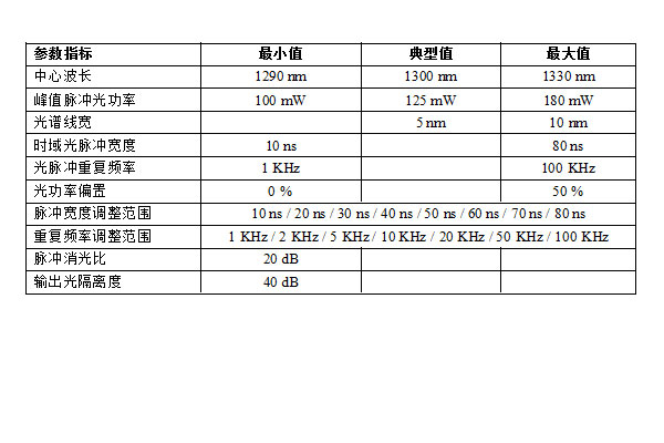 窄脉冲宽度 (Min. 10ns) 高峰值脉冲光功率 (Max. 300mW) 高消光比 (Typ. 20dB) 脉冲宽度可调 脉冲重复频率可调 内置电同步电信号接口 内置光监控信号接口 支持外调制模式 温度波长锁定控制 提供订制设计与加工 |