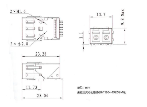 ● 遵循sff-8472的数字诊断功能提供高速的I/O表面贴装管脚全金属外壳设计