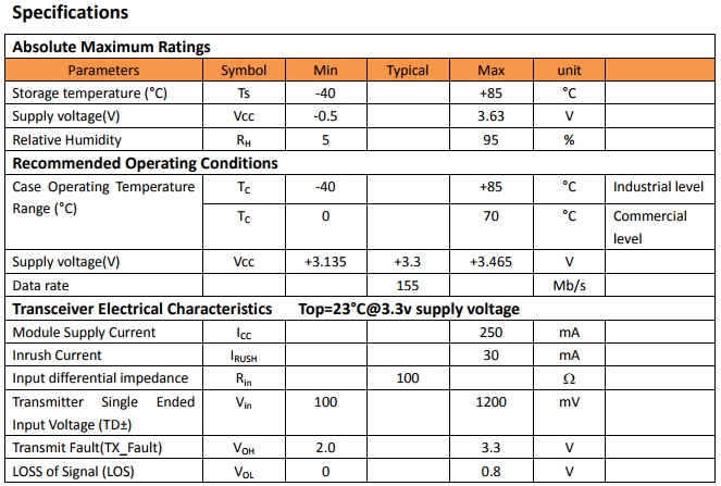 155Mb/s BI-DIRECTIONAL Single Fiber SFP Transceiver