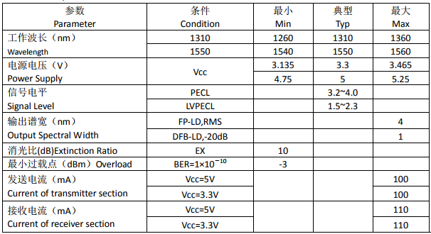 ● 发射器件可选用 1310nm 的 FP 激光器或 1550 DFB 激光器