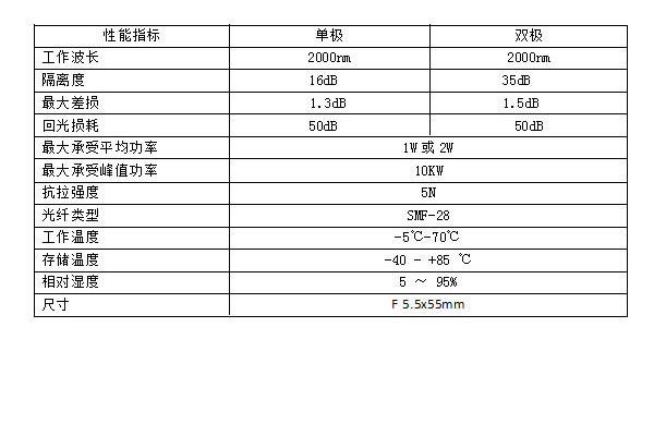 2000nm偏振无关隔离器是按照Telcordia标准设计和制造,独特的生产工艺和光路环氧树脂处理提高装置的高功率处理的能力。该器件的特点是具有高稳定性和高可靠性,是专门为2000nm激光系统设计的器件。 |