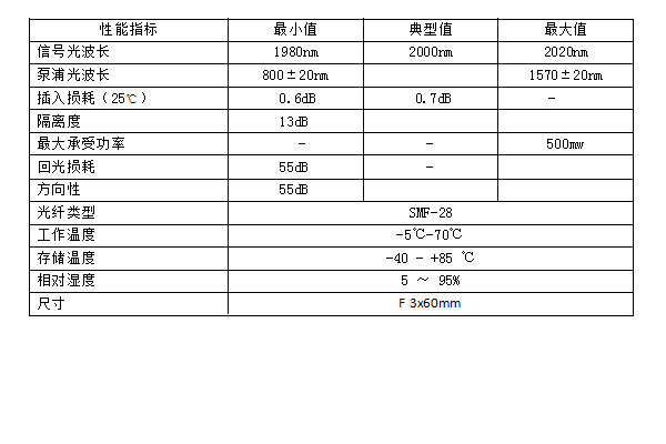 熔锥型的2000nm波分复用器结合或分离1570nm或800nm与2000nm的光信号。它提供很低的插入损耗,高可靠性,和良好的环境稳定性。 |