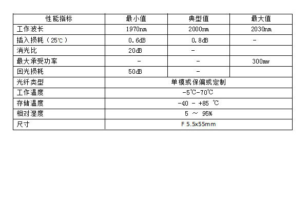 2000nm的在线光起偏器是将光信号按照特定的偏振方向输出的无源器件。它可以将非偏振光转换成高消光比的偏振光。它以其优良的偏振特性,较高信号消光比在高速度通信系统和通信测试仪表中有着非常广泛的应用。 |