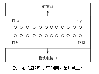 模块尾纤接口为标准MT光连接器,光接口定义见下图。