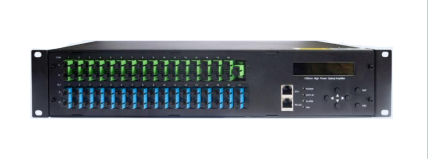 采用独创的智能温控系统,(1)采用专用温控芯片,使设备发热量比常规电路减小 30%;(2)专业的散热风道设计保证最优的温度稳定性,同时,当整机温度高于45℃时,强力风扇开始工作,温度低于40℃时,风扇停止,保证系统的热稳定性与风扇的长寿命。智能化监控与管理系统。独特的具有 RS232,RS485 和以太网三种网管接口,且开放的网管接口,保证与任何的网管系统的互联性。该产品可应用于 CATV 光传输系统,以及 FTTH 所需要的大功率分配系统。可以单独进行最多 64 路CATV 模拟数字电视信号的分配传播,也可以配合PON系统进行最多32的PON端与CATV端合波分配\,做到真正的三网融合(可选三波长WDM)。