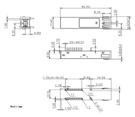 2X10 SFF BIDI SM 光模块(TX1310FP/ RX1550)