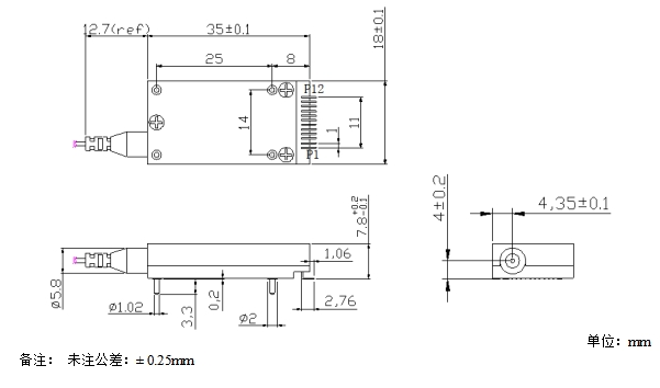 3.125Gbps 1X12 MiniSFF 单光纤双接收模块