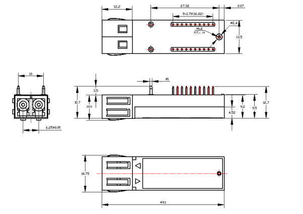 ● Compliant with Small Form Factor (SFF) Transceivers Multi-Sourcing Agreement (MSA)