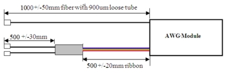 Ribbon 500mm± 20 mm and Fan out 500mm± 30mm with 900um loose tube |