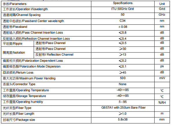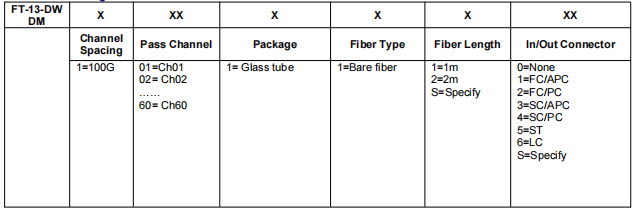 本产品为FT-13系列波分复用器,仅展示部分参数,如有需要,请联系我们。
