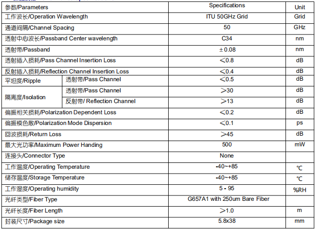 50G DWDM Device Spec
