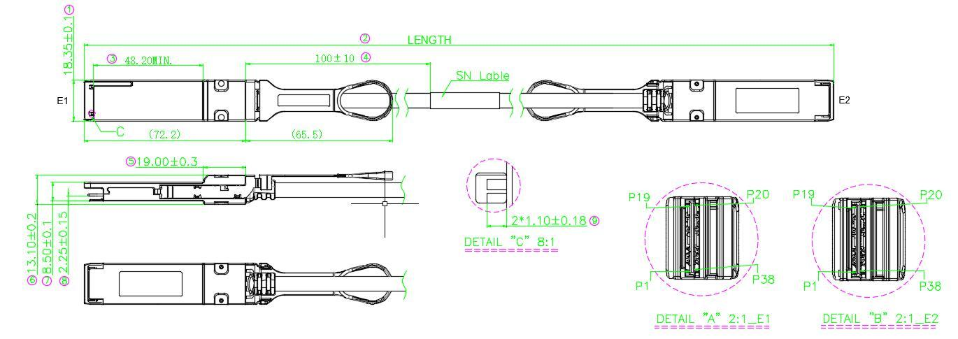 ● Compliant QSFP MSA specification and SFF-8436