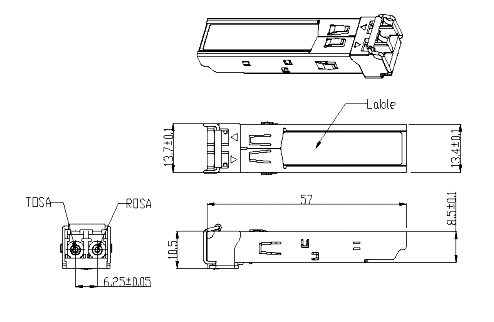 SFP 光模块是高性能、高性价比的模块,支持 622Mbps 数据速率和 20km 的 SMF 传输距离。光模块由三部分组成:FP激光发射器、集成了跨阻前置放大器(TIA)的PIN光电二极管和MCU控制单元。所有模块均满足 I 级激光安全要求。光模块与 SFP 多源协议 (MSA) 和 SFF-8472 兼容。欲了解更多信息,请参阅SFP MSA。