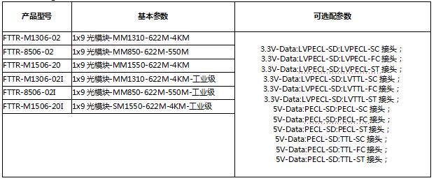 本产品为光模块1x9系列,仅展示部分参数,如有需要,请联系我们。