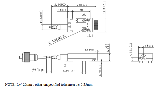 备注:接口可选;“xx”表示尾纤长度,尾纤长度可定制。