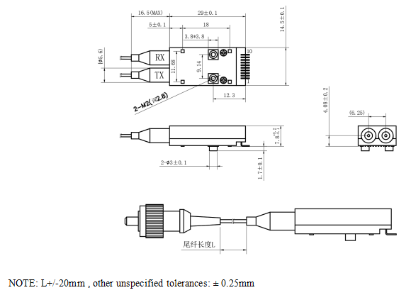 ● 2-Fiber Mini SFF Pigtail Transceiver