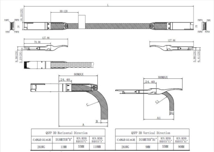 ● 采用QSFP-DD可热插拔封装模块同轴电缆组件