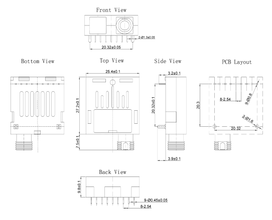 ● 标准1×9管脚封装,引脚配置与 Multisource 协议兼容