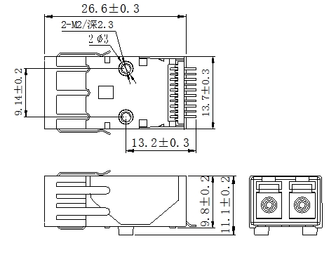 FTRS-851X-02xx型双纤双向超短型光收发一体模块将发送和接收部分封装在一个小尺寸金属壳体内,增强了模块抗电磁干扰能力。光发射部分采用VCSEL激光器,发送信号引脚(TD+和TD-)接口电平标准为CML。