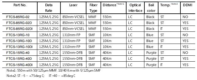 ● Operating data rate at 125Mbps or 1.25 Gbps