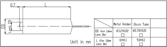 850MM Collimator, 850nm (Single fiber, 62.5/125um),1.8mm lens diameter, C lens,5mmworking distance,1.0mfiber length
