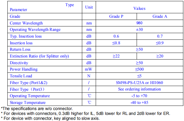 低功耗SFP Xenpak光模块 特种光纤 华三SFP 安华高Avago 其他光模块 PM Fused Coupler 皮纤跳线系列