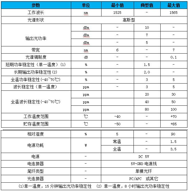 ● 输出光功率稳定度高:最佳全温功率稳定性小于1%