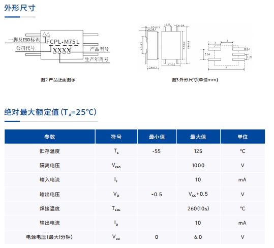 FCPL-M75L 型光电耦合器是由一个红外发光二极管和一个光敏芯片组成的单通道光电耦合器,有陶瓷/塑封可选,有商业级/工业级/军品级可选。