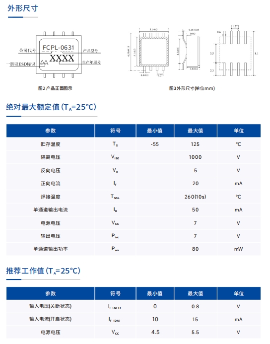 FCPL-0630 型光电耦合器是由两个红外发光二极管和两个光敏芯片组成的双通道光电耦合器,有陶瓷/塑封可选,有商业级/工业级/军品级可选。