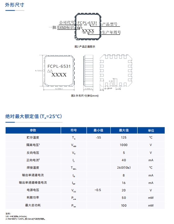 FCPL-6531 型光电耦合器是由两个红外发光二极管和两个光敏芯片组成的双通道光电耦合器,有陶瓷/塑封可选,有商业级/工业级/军品级可选。