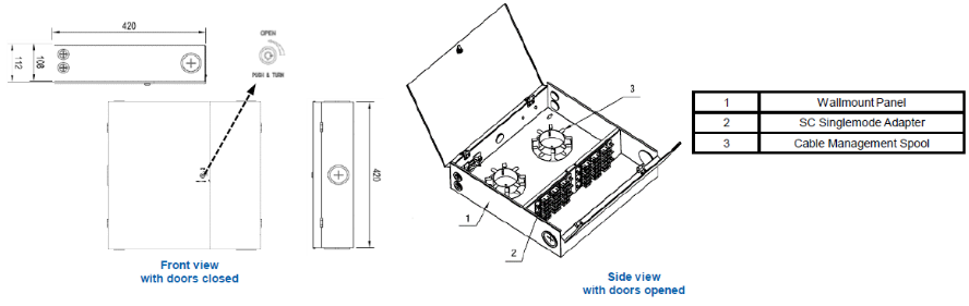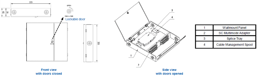 部件描述: 用于拼接的壁挂式面板,24 芯光纤(尺寸 1),装有 SC 多模式适配器(带米色外壳)