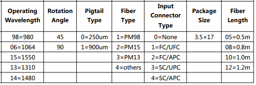 | Applications: ● Fiber Laser ● Fiber Sensor ● Communication System ● Test Instrumentations ● Polarization maintaining optical system |
