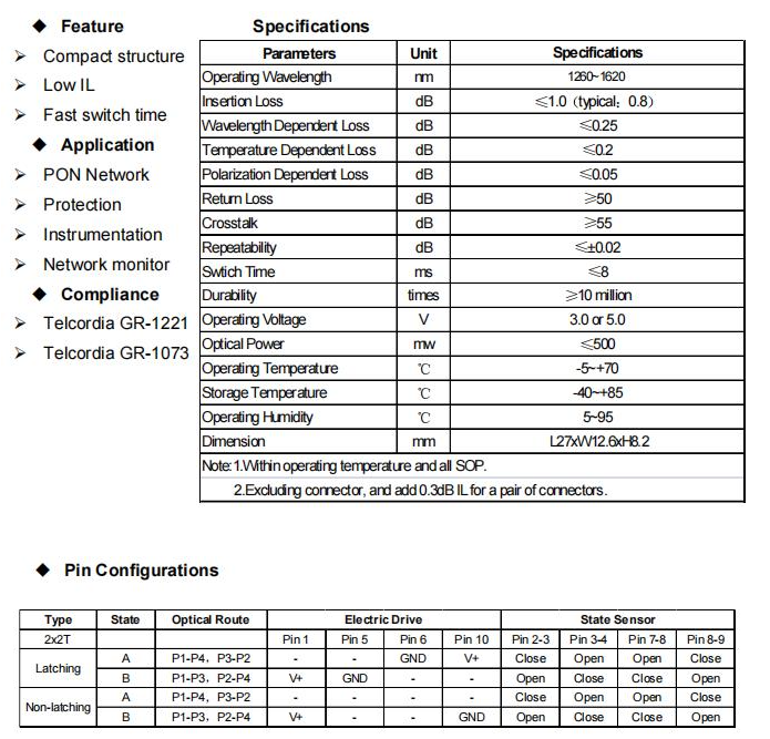 广泛应用于OADM、OXC、系统监控等领域。基于特殊的光学设计,它具有优异的光学特性、开关时间快、插入损耗低、可靠性高。此外,由于其结构紧凑、体积小,在光纤通信系统中易于与高密度集成。
