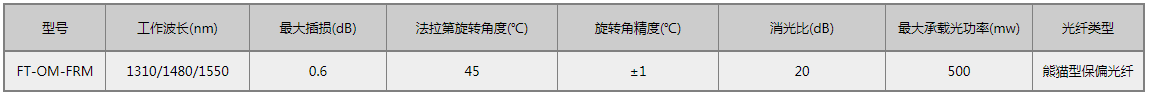 保偏法拉第旋转镜是一种能够将保偏信号光旋转90度偏振态的无源器件。这种旋转镜具有卓越的性能,包括尽可能低的插入损耗和环境稳定性。在保偏光纤放大器,保偏光纤激光器和其他光纤仪器中有非常广泛的应用。